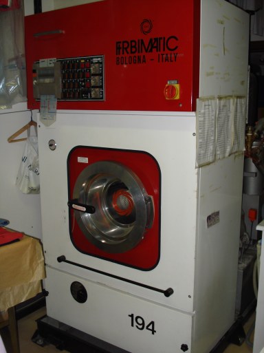 Lavatrice a percloroetilene mod. Firbimatic, programmatore a scheda, n.2 serbatoi, n.1 filtro, circuito chiuso, buono stato.